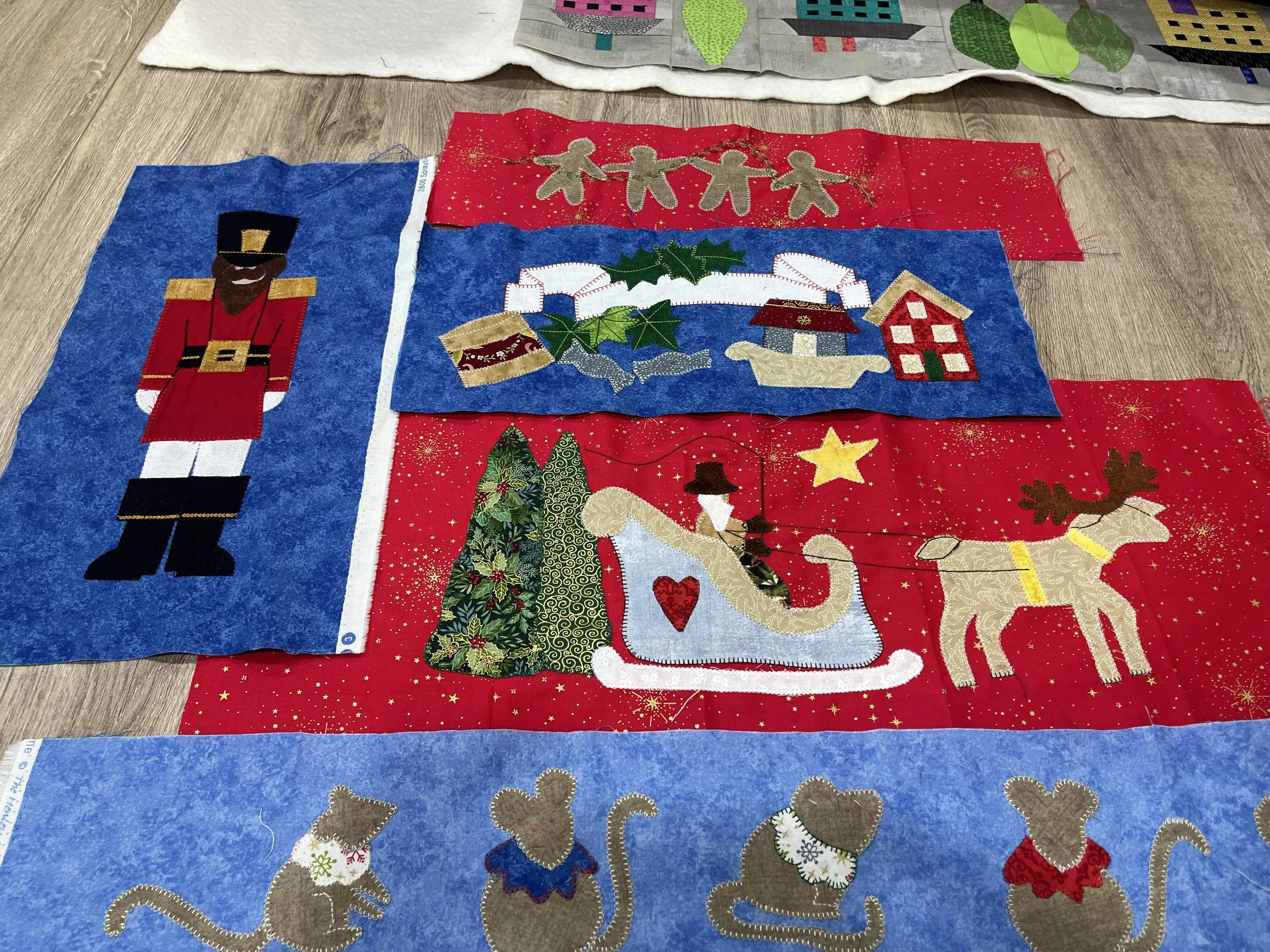 Mimram, Icknield and Mead Quilters made and exchanged coasters for Christmas. See examples below.