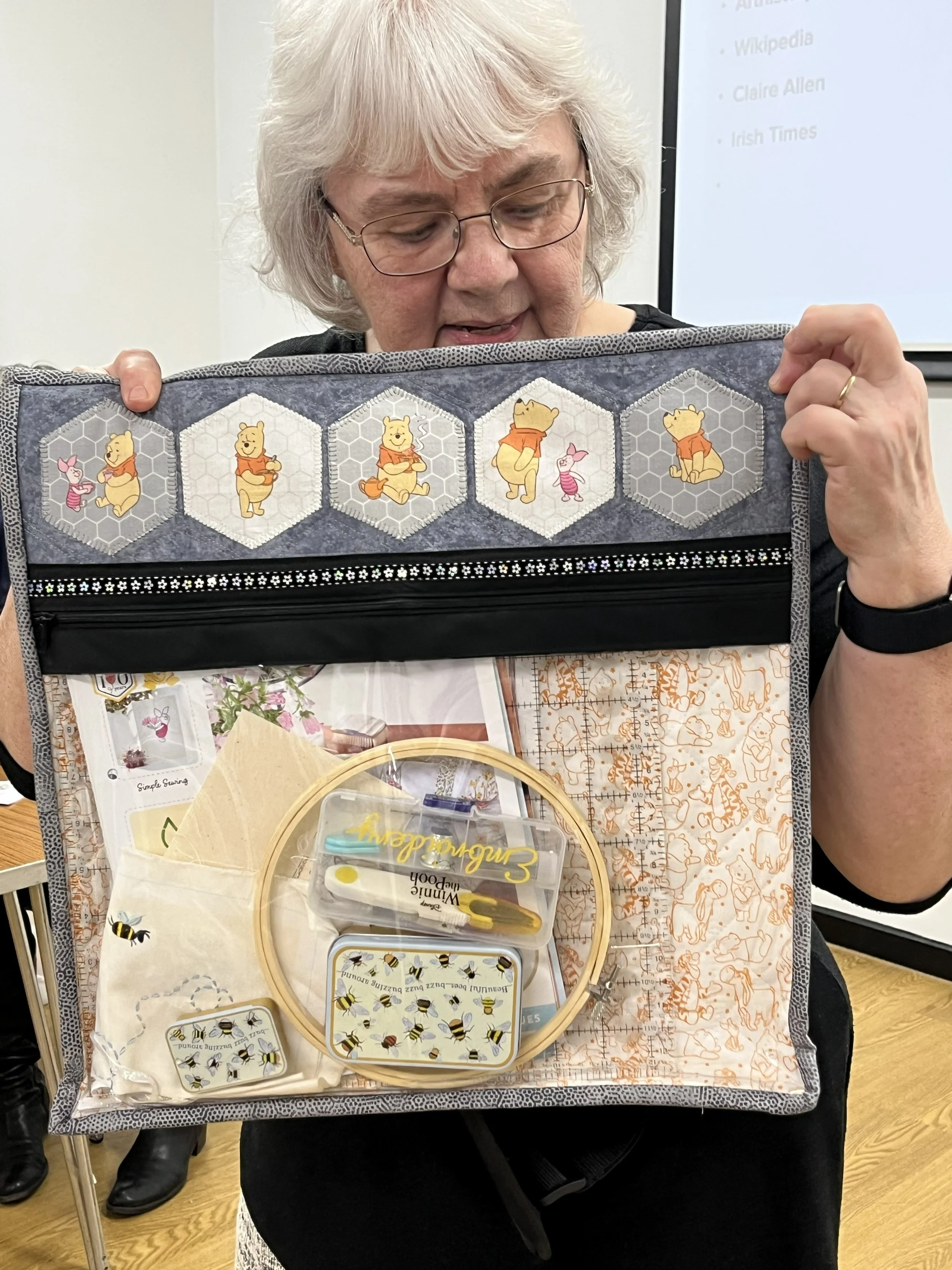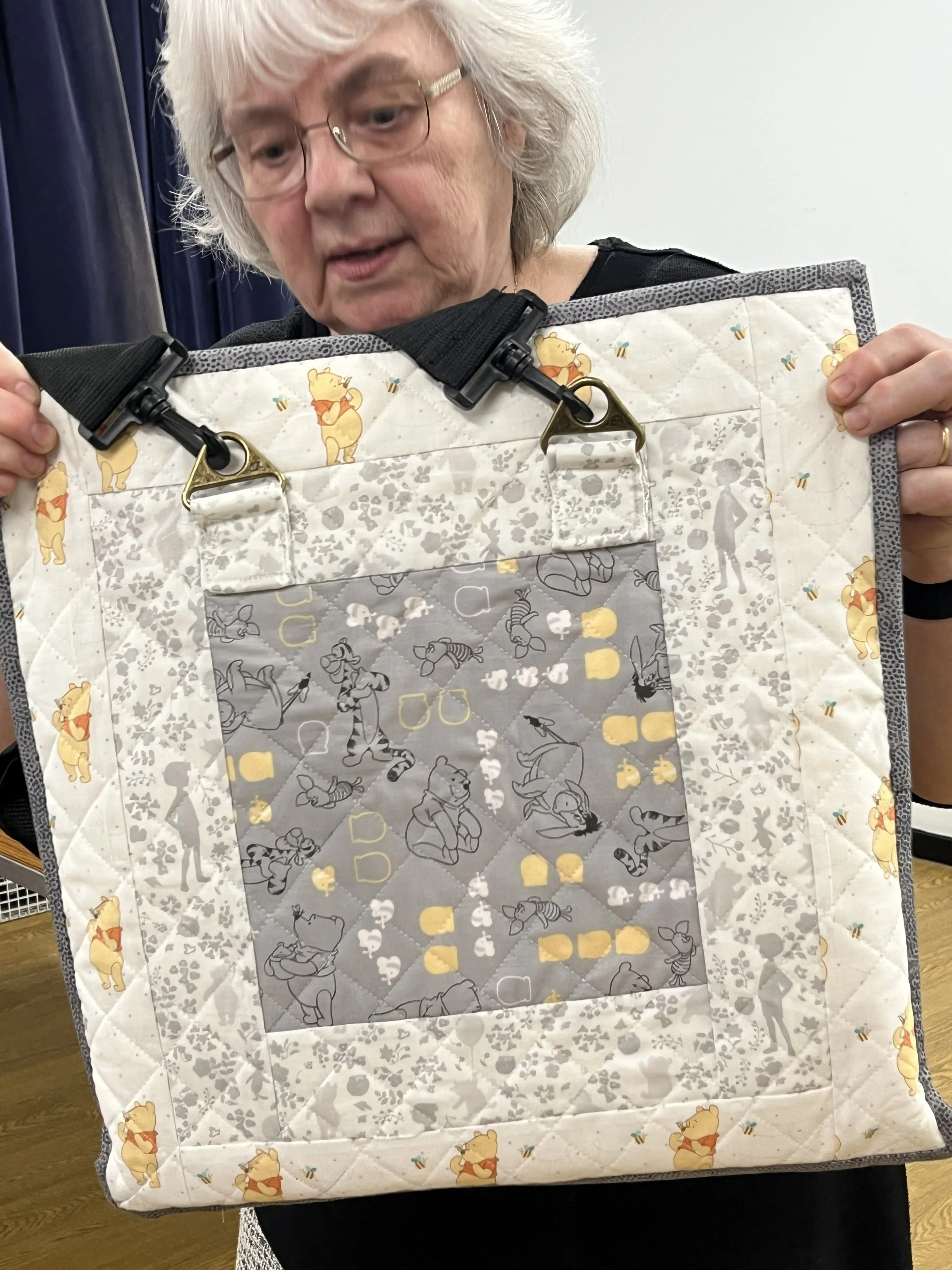 We made bags and quilts to support our charities